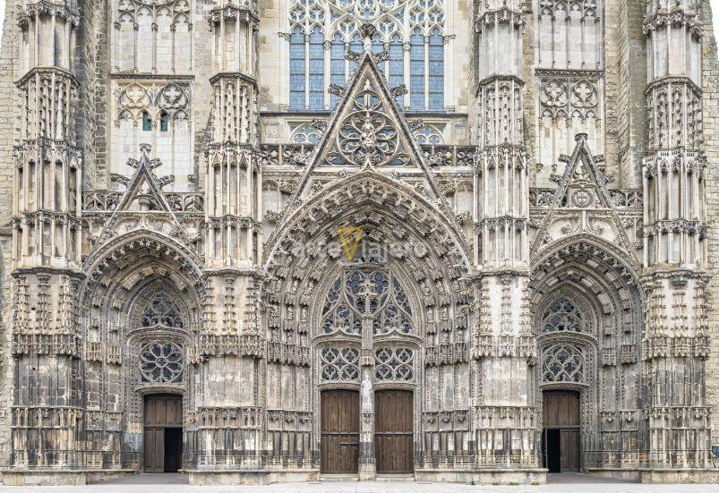 Vista de la imponente fachada occidental de la Catedral de Tours, Francia