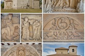 En el interior, los capiteles del arco triunfal destacan por su iconografía. Entre ellos, uno representa a un personaje flanqueado por bestias aladas, interpretado por algunas voces como una posible alusión a la Ascensión de Alejandro Magno, un motivo iconográfico inusual que sugiere influencias culturales amplias y una audiencia con cierto grado de erudición. Tuvimos la oportunidad de contemplar otra Ascensión de Alejandro Magno en la Catedral de Fidenza (Italia). Esta escena, junto a otros motivos de animales fantásticos, evidencia la creatividad y el simbolismo del arte románico alavés.