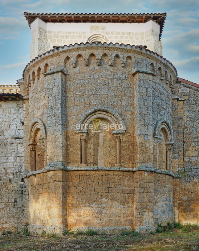 Fotografía de arriba: vista del ábside románico de la Iglesia de Arenillas de Riopisuerga (Burgos).