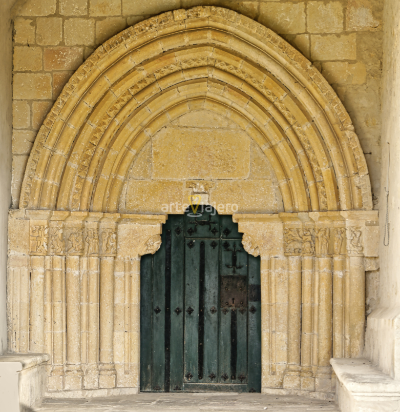 Resulta muy interesante la portada románica que se abre en el muro de la Epístola, se encuentra cobijada por un porche y luce capiteles historiados que pasamos a citar a continuación: