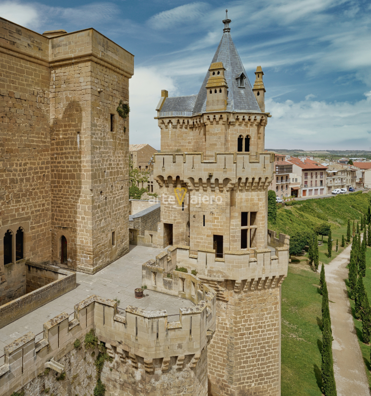 El Palacio Real de Olite es un gran castillo construido en el S. XIII y ampliado en el S. XV por el rey Carlos III El Noble. En su edificación se aprovecharon los restos correspondientes a una construcción que se remonta hasta nada menos que a la época romana. El palacio parece seguir las trazas de los castillos franceses que encontramos en Borgoña o en el mismo Valle del Loira, lo cual se ve en sus singulares y sugerentes torres y chimeneas que hacen inconfundible su perfil desde la lejanía.