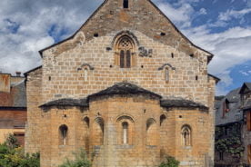 En la parte exterior del ábside podemos encontrar las elegantes arcuaciones ciegas apoyadas sobre lesenas tan típicas en la arquitectura de estilo románico-lombardo. Como curiosidad, en esta iglesia no existe una sección presbiteral que comunique el hemiciclo con el primer tramo de la nave.