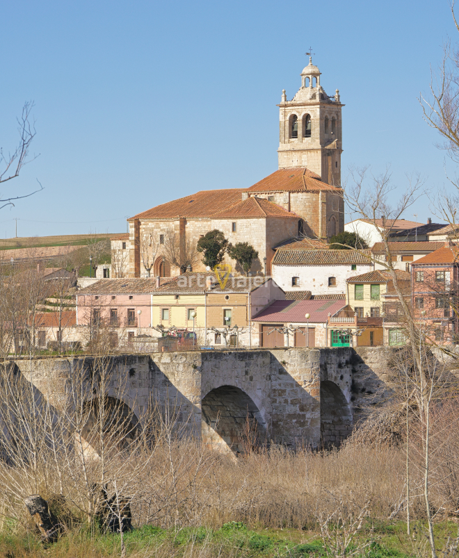 Vista de Tordómar con el puente que cruza el río Arlanza
