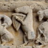 El Asno tocando la lira fue una representación frecuente en el románico francés, la iglesia de Aulnay nos presenta un interesante ejemplo