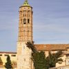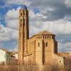 La iglesia de Romanos (Zaragoza), construida sobre un recinto fortificado en el S. XVI, todavía conserva una esbelta torre de estilo mudéjar